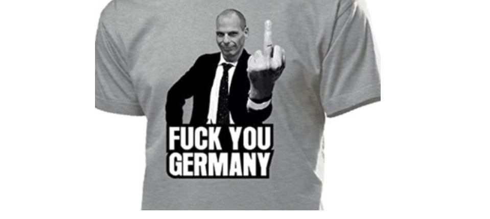 Εξοργισμένος ο Βαρουφάκης για μπλούζα που τον δείχνει να κάνει χειρονομία κατά της Γερμανίας