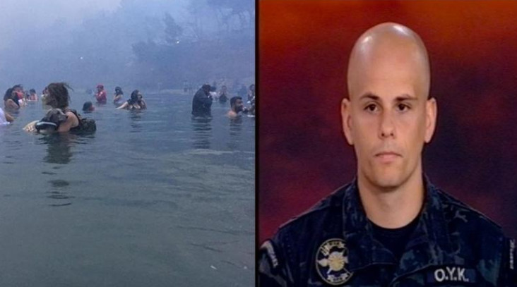 Στην επιχείρηση, όπως είπε, πήραν μέρος και έξι άνδρες της ομάδας ΔΙΑΣ της Αστυνομίας που είχαν φτάσει μέσα από τις φλόγες στην παραλία και αυτοί με αυτοθυσία βοήθησαν τον αποκλεισμένους στην παραλία της κολάσεως να επιβιβαστούν στα φουσκωτά.