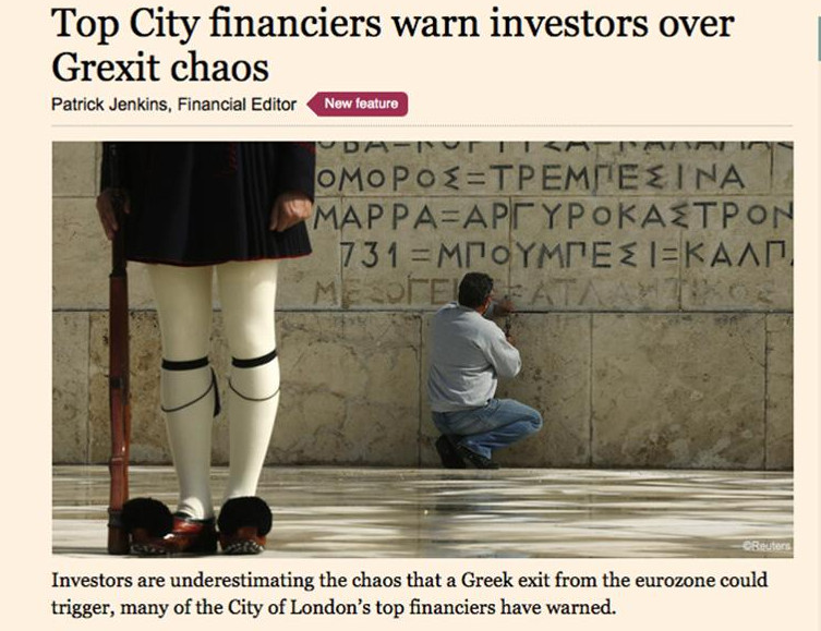 Το δημοσίευμα αναφέρει πως οι πολλοί υποτιμούν το χάος που θα επιφέρει στην Ευρωζώνη ενδεχόμενη έξοδος της Ελλάδας από το ευρώ, φιλοξενώντας μάλιστα δηλώσεις του Xavier Rolet, διευθύνων συμβούλου του Χρηματιστηρίου του Λονδίνου, ο οποίος σημειώνει ότι «ούτε η Ευρωζώνη, αλλά ούτε και η Ευρωπαϊκή ¨Ενωση θα μπορούσαν να επιβιώσουν σε ένα τέτοιο ενδεχόμενο».