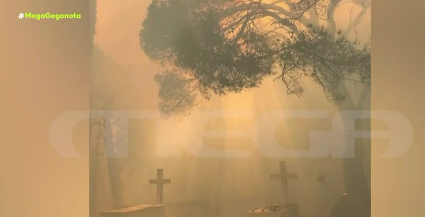Η φωτιά έχει αφήσει, προς το παρόν, ανέπαφη εκκλησία και μαυσωλείο.