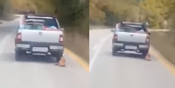 Οι εικόνες που κατέγραψε με το κινητό του τηλέφωνο ένας οδηγός που κινούνταν πίσω από το αυτοκίνητο που ήταν δεμένος ο σκύλος σοκάρουν.