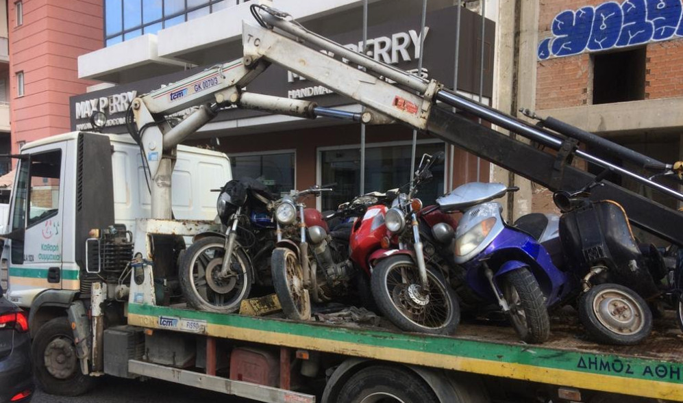 Έτσι, στο πλαίσιο της απελευθέρωσης του δημόσιου χώρου, της δημιουργίας θέσεων στάθμευσης αλλά και της συνολικής βελτίωσης της καθημερινότητας των κατοίκων και των επισκεπτών της πόλης, καθώς τα οχήματα αυτά αποτελούν εστίες μόλυνσης, ο Δήμος Αθηναίων άρχισε ήδη την περισυλλογή των εγκαταλελειμμένων δικύκλων με στόχο μέσα στον επόμενο μήνα να έχουν απομακρυνθεί τουλάχιστον 500 και από τις επτά Δημοτικές Κοινότητες. Στην συνέχεια θα προχωρήσει με τους ίδιους ρυθμούς για την απομάκρυνση και των υπολοίπων από δρόμους και πεζοδρόμια, ενώ γίνεται ακόμα πιο οργανωμένη η προσπάθεια εντοπισμού και καταγραφής εγκαταλελειμμένων δικύκλων προκειμένου να ακολουθήσει η διαδικασία απόσυρσης τους μέσω του ΟΔΔΥ.