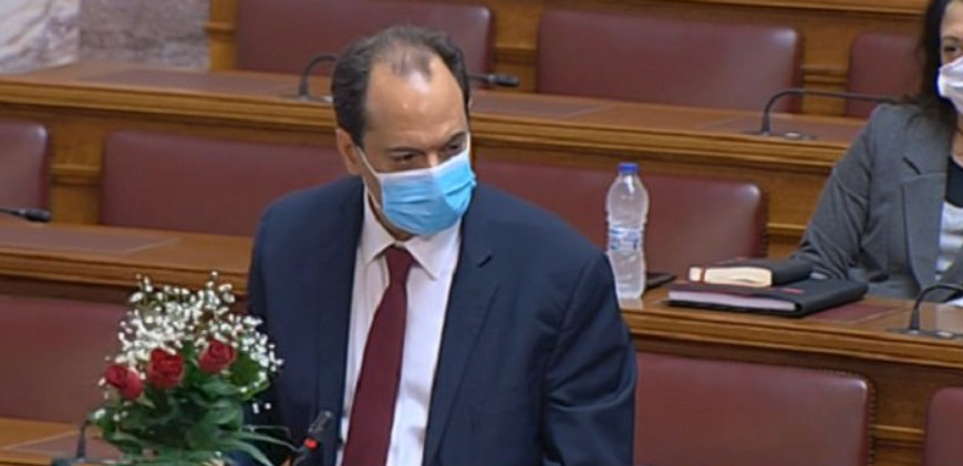 Ο Σπίρτζης με ανθοδέσμη για τον Χρυσοχοΐδη και τον Μητσοτάκη στη Βουλή