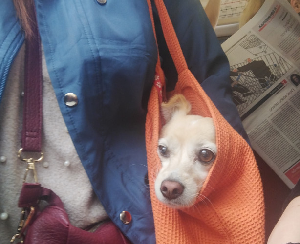 Μπαίνω στο μετρό. Στον ώμο κρέμεται μια τσάντα με το μικρόσωμο σκύλο μου μέσα. Το κεφάλι της έξω απ΄τη τσάντα! Στο βαγόνι όλοι φαίνονται νυσταγμένοι. Με το που βλέπουν τη Μάγκυ, ένα χαμόγελο σκίζει κάθε χείλος. Τους κοίταζε όλους έναν προς έναν.