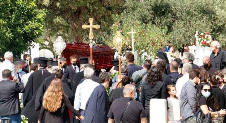 Πλήθος κόσμου, συγχωριανοί αλλά και άνθρωποι που βρέθηκαν στο Γαλατά από όλη την Κρήτη για να αποχαιρετήσουν τον Μίκη Θεοδωράκη, είχαν παραταχθεί σε όλο το μήκος της διαδρομής που διένυσε η πομπή από τον Ιερό Ναό του Αγίου Νικολάου που τελέστηκε η εξόδιος ακολουθία, έως το κοιμητήριο.