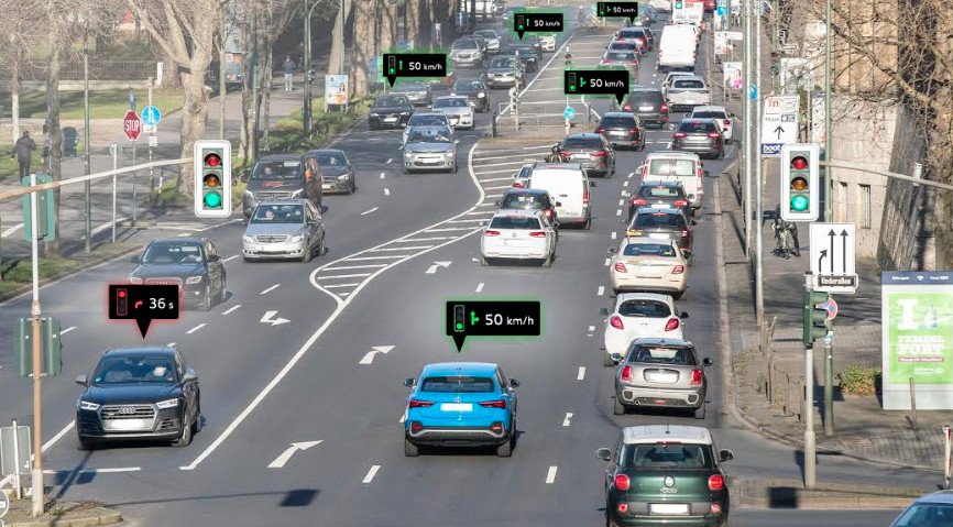 Μέχρι τις αρχές του καλοκαιριού, οι περισσότερες από τις διασταυρώσεις στο Ντίσελντορφ, 450 από τις συνολικά περίπου 600 εγκαταστάσεις, θα συνδεθούν στο δίκτυο. Οι υπηρεσίες Όχημα-προς-Υποδομή (Vehicle-2-Infrastructure, V2I) όπως το Traffic Light Information της Audi, αυξάνουν την ευκολία, την ασφάλεια και την εξοικονόμηση καυσίμου στους δρόμους των πόλεων.