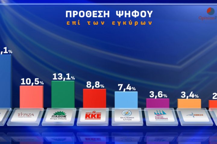Opinion Poll: Στο 30,8% η ΝΔ, διευρύνει τη διαφορά από το ΠΑΣΟΚ, πέμπτος ο ΣΥΡΙΖΑ