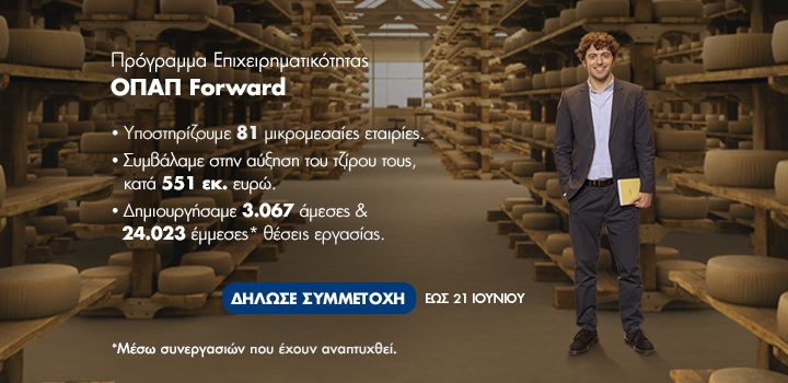 Τη δυνατότητα να αναπτυχθούν, να αυξήσουν τον τζίρο τους και να δημιουργήσουν νέες θέσεις εργασίας θα δώσει, για ακόμη μια χρονιά, το μεγαλύτερο πρόγραμμα υποστήριξης μικρομεσαίων επιχειρήσεων στην Ελλάδα, ΟΠΑΠ Forward.