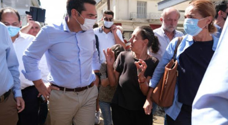 Ο πρόεδρος του ΣΥΡΙΖΑ περπάτησε στους δρόμους στο κέντρο της Καρδίτσας και συνομίλησε με καταστηματάρχες και κατοίκους, και ζήτησε η κυβέρνηση να αποζημιώσει άμεσα και ολικά τους πληγέντες.