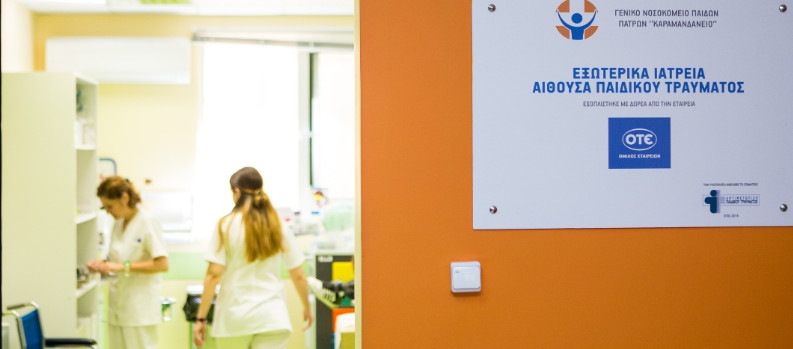 Σε συνεργασία με τον φορέα «Αντιμετώπιση Παιδικού Τραύματος», ο Όμιλος ΟΤΕ συνέβαλλε στη δημιουργία Τμήματος Επειγόντων Περιστατικών(ΤΕΠ) στο «Καραμανδάνειο» Γενικό Νοσοκομείο Παίδων Πατρών, τα εγκαίνια του οποίου πραγματοποιήθηκαν πρόσφατα. Με τη λειτουργία του ΤΕΠ, παρέχονται πρώτες βοήθειες σε τραυματισμένα παιδιά, σε έναν ειδικά διαμορφωμένο και εξοπλισμένο χώρο, με σκοπό να μειωθεί ο κρίσιμος χρόνος μεταξύ τραυματισμού και θεραπείας. Αντίστοιχο Τμήμα Επειγόντων Περιστατικών για παιδιά δημιουργήθηκε και λειτουργεί εδώ και δύο χρόνια στο «Ιπποκράτειο» Γενικό Νοσοκομείο Θεσσαλονίκης. Αξίζει να σημειωθεί ότι σύμφωνα με την Εθνική Στατιστική Υπηρεσία κάθε χρόνο, τραυματίζονται περίπου 500.000 παιδιά στην Ελλάδα.