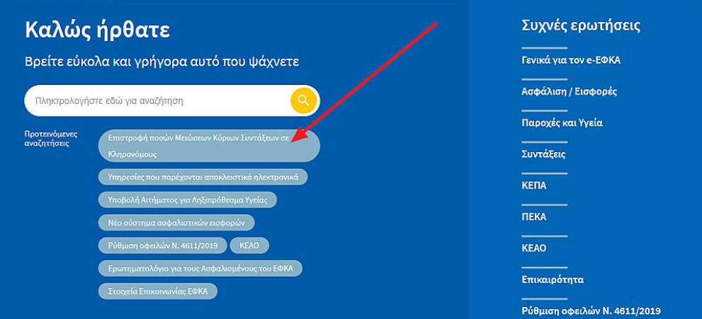 Άνοιξε η ηλεκτρονική πλατφόρμα (ηλεκτρονική υπηρεσία επιστροφής ποσών μειώσεων κύριων συντάξεων σε κληρονόμους) στο efka.gov.gr για την υποβολή αιτήσεων από τους κληρονόμους που δικαιούνται αναδρομικά.