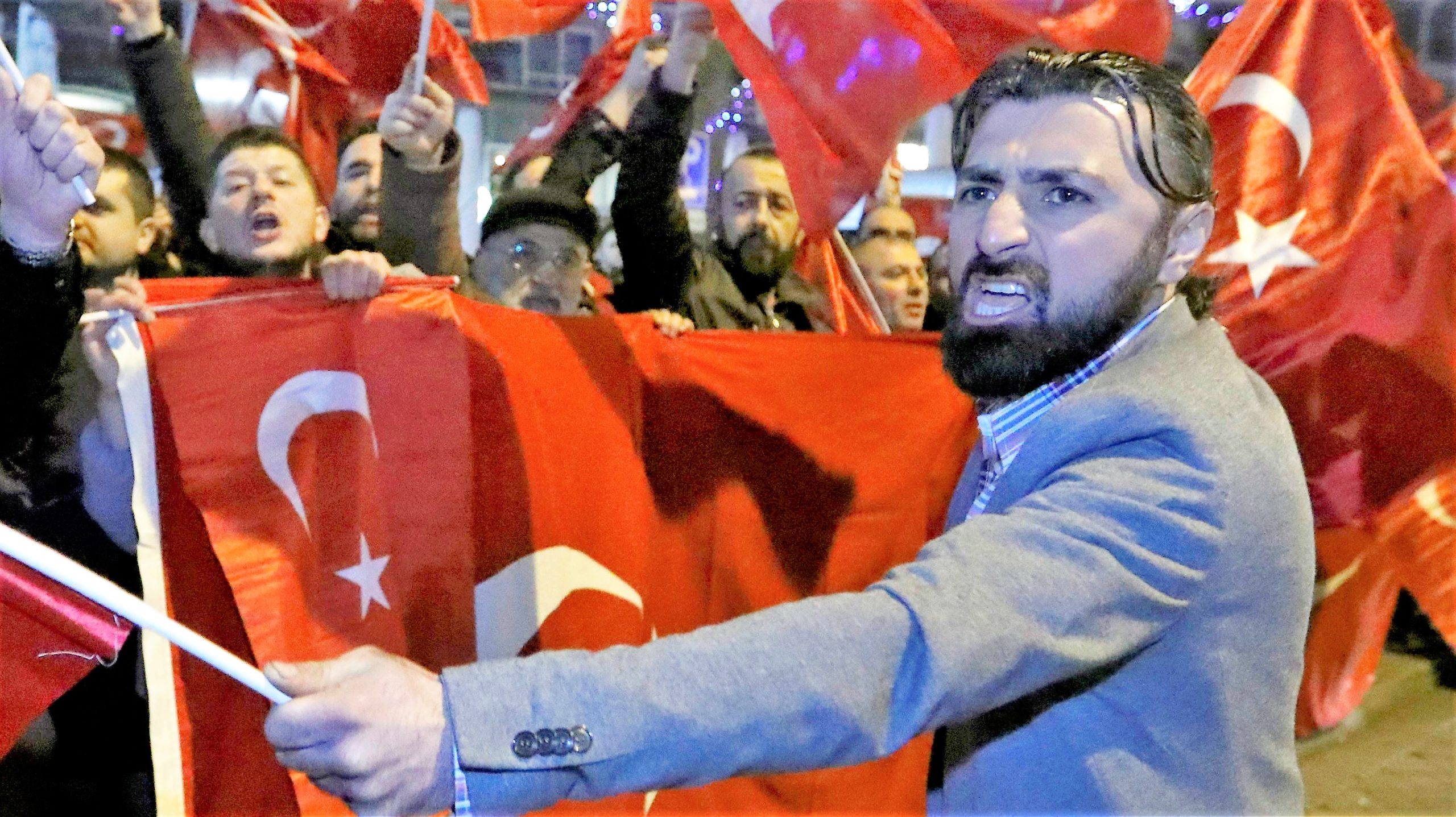 Μετά από τα παραπάνω γεγονότα εκατοντάδες διαδηλωτές κρατώντας τουρκικές σημαίες συγκεντρώθηκαν έξω από το τουρκικό προξενείο του Ρόττερνταμ ζητώντας να δουν την υπουργό Οικογενειακών Υποθέσεων της Τουρκίας. Οι ολλανδικές δυνάμεις της τάξης αποπειράθηκαν με μεταλλικά φράγματα και έφιππους αστυνομικούς να απωθήσουν από το προξενείο το πλήθος που μεγάλωνε μιας και διαδηλωτές άρχισαν να φθάνουν από τη Γερμανία.