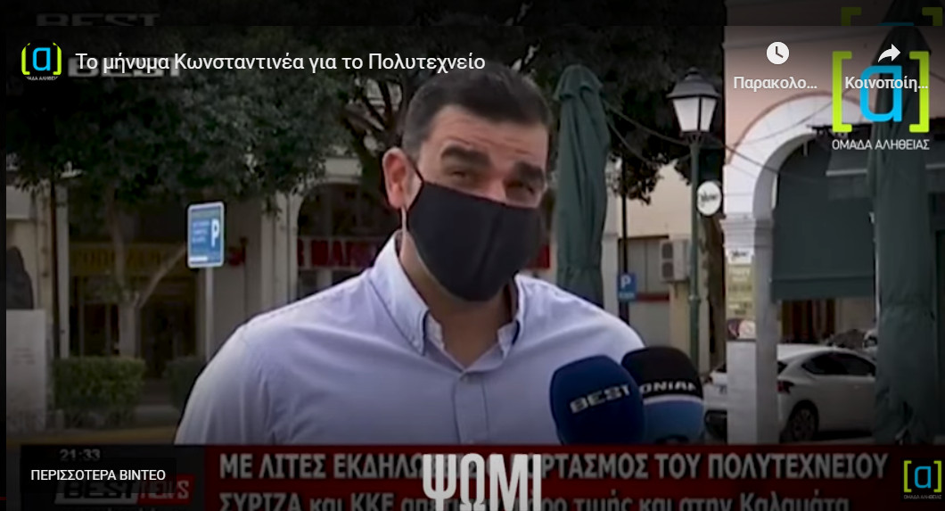 Για την ακρίβεια είπε: «Το σημερινό μήνυμα έχει μία αντίθεση σε σχέση με το μήνυμα που υπήρχε τότε: παιδί, παιδεία ελευθερία, ψωμί, παιδεία, ελευθερία. Στη θέση του ψωμιού μπορούμε να βάλουμε, οι κοινωνικές, η κοινωνική υγεία, η κοινωνική ισορροπία, η κοινωνική αγάπη που μπορεί να έχει ο καθένας μας μέσα σε αυτούς τους δύσκολους καιρούς. Εύχομαι αυτοί οι ανθρώποι, οι άνθρωποι που κάναν αυτούς τους αγώνες για την ελευθερία μας να έχουν βασικά ένα τόπο διαφυγής απέναντι σε αυτούς τους ανθρώπους και να αξίζουν οι αγώνες τους απέναντι σ’ αυτούς τους ανθρώπους που υπάρχουνε τώρα και κάνουνε τους δύσκολους καιρούς αυτούς τους αγώνες».