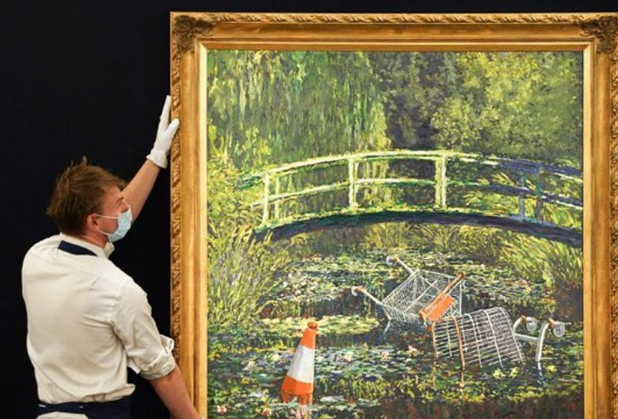 Στις 21 Οκτωβρίου, δημοπρατείται στον Sothebys του Λονδίνου το έργο του Banksy «Show me the Monet», ερμηνεία από τον καλλιτέχνη δρόμου και ακτιβιστή του ιμπρεσιονιστικού αριστουργήματος του 1899 του Κλοντ Μονέ «Le Bassin aux Nympheas (Η Λιμνούλα με τα Νούφαρα)».
