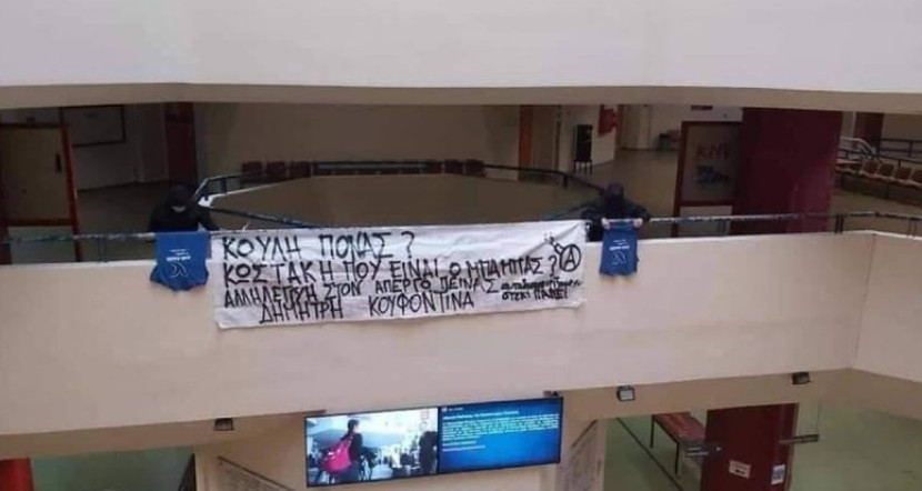 Χυδαίο πανό στο ΠΑΠΕΙ υπέρ Κουφοντίνα - «Κωστάκη πού είναι ο μπαμπάς;» γράφουν για Μπακογιάννη (εικόνα)