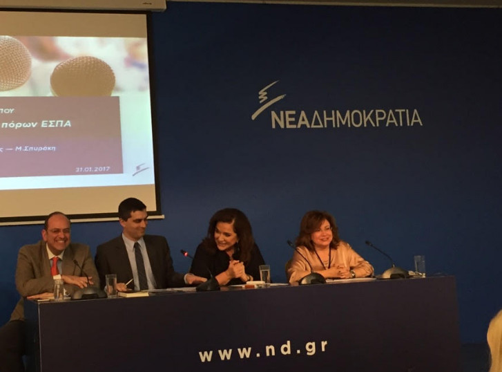 “Το ΕΣΠΑ δεν είναι εργαλείο για δημόσια έργα αλλά για να ενισχύσει τις επιχειρήσεις” δήλωσε η τομεάρχης Ανάπτυξης Ντόρα Μπακογιάννη και συμπλήρωσε ότι όταν αλλάξει η κυβέρνηση στον τόπο, θα ενισχυθούν οι δημόσιες υπηρεσίες για να περάσουν χρήματα στην πραγματική οικονομία. “Από εξαγγελίες και εκδηλώσεις πάει καλά η κυβέρνηση αλλά δεν πιστεύουν στην ελεύθερη οικονομία και δεν πρόκειται να δώσουν χρήματα ” συμπλήρωσε.