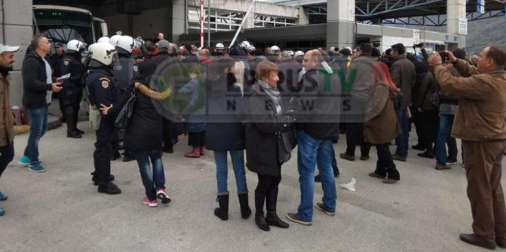 Δυνάμεις των ΜΑΤ που βρίσκονται στο τελωνείο εμποδίζουν Έλληνες να περάσουν στην Αλβανία προκειμένου να παρευρεθούν στο μνημόσυνο του Κωνσταντίνου Κατσίφα.