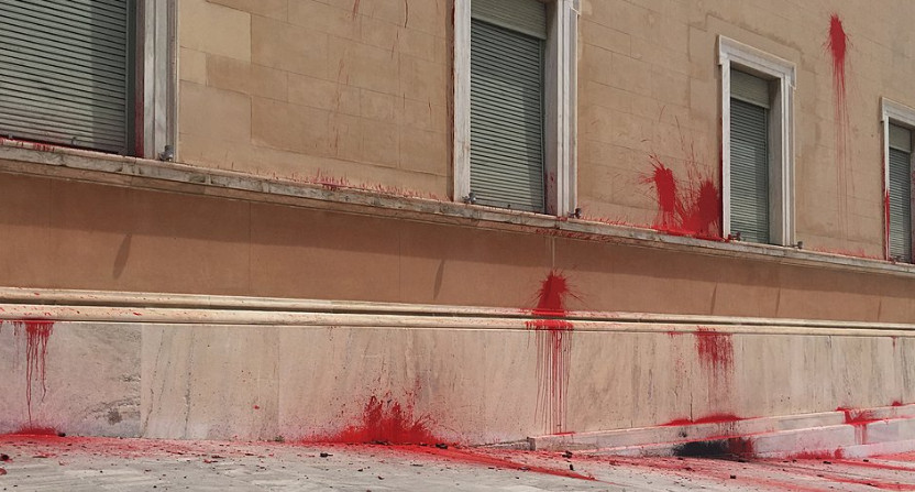 Μετά την απολογία του ελεύθερος με περιοριστικούς όρους αφέθηκε ο 36χρονος που είχε συλληφθεί για την επίθεση του Ρουβίκωνα στη Βουλή με καπνογόνα και μπογιές.