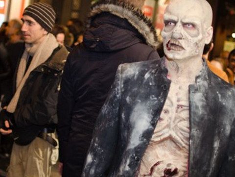 Μασκαράδες μεταμφιεσμένοι σε ζόμπι, γέμισαν χθες την Πλατεία Συντάγματος, η Ερμού και το Θησείο στο πλαίσιο της εκδήλωσης Zombie Athens Walk, τον ετήσιο, περίπατο ζόμπι στο κέντρο της πόλης, που φέτος διοργανώνεται για πέμπτη χρονιά.