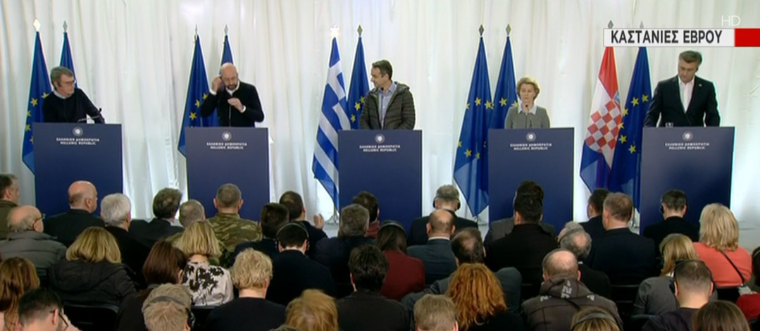 Η εφημερίδα αναφέρεται στις αλλεπάλληλες επαφές της καγκελαρίου Μέρκελ, όπως και των ευρωπαίων αξιωματούχων, και εστιάζει στη συνέχεια στις Βρυξέλλες. Εκεί «υποθέτουν ότι ο Τούρκος πρόεδρος ενδιαφέρεται για περαιτέρω στήριξη. Οι Ευρωπαίοι θα μπορούσαν να εμπλακούν σε κάτι τέτοιο. Σύμφωνα με διπλωμάτη υπήρχε από τα κράτη-μέλη βούληση για βασική στήριξη της Τουρκίας ως προς τη συνέχιση της χρηματικής βοήθειας προσφύγων από τη Συρία που βρίσκονται στη χώρα. Ωστόσο αυτή η βοήθεια θα έπρεπε να είναι σημαντικά χαμηλότερη από τα 6 δις ευρώ που είχε υποσχεθεί η ΕΕ το 2016 (…) Εντούτοις όλα τα κράτη-μέλη δεν συμφωνούν, αν είναι τώρα η κατάλληλη στιγμή να προσεγγίσουν τον Ερντογάν. Πολλές κυβερνήσεις βλέπουν ως απόπειρα εκβιασμού το άνοιγμα των συνόρων». Αναφορικά με τη στάση της Μέρκελ η Handelsblatt παρατηρεί ότι η ίδια θεωρεί «εντελώς απαράδεκτo όλο αυτό που γίνεται στις πλάτες των προσφύγων», αλλά επίσης δείχνει «προθυμία και κατανόηση για τις ανησυχίες της Τουρκίας (…) H στήριξη της Τουρκίας είναι προς το συμφέρον της Ευρώπης, εκτιμά η Μέρκελ και η καγκελάριος είχε χρησιμοποιήσει ήδη το ίδιο επιχείρημα τον Μάρτιο του 2016, όταν υπεγράφη η συμφωνία με την Άγκυρα».