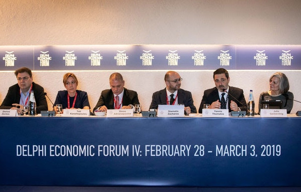 Ο Αντιπρόεδρος του Οικονομικού Φόρουμ των Δελφών κ. Γιάννης Θωμάτος παρουσίασε την κα Julie Gerdering, Εκτελεστική Διευθύντρια της εταιρίας Merck & Co, μιλώντας για την πλούσια εμπειρία της στον τομέα της διαχείρισης κρίσεων, κυρίως από κρατικές θέσεις στο παρελθόν.