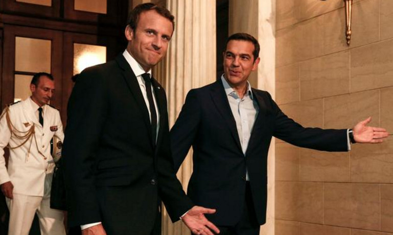 Κατά συνέπεια απέφυγε συγκεκριμένες αναφορές στη νέα Ευρώπη ή σε διευκολύνσεις για το ελληνικό χρέος, τις οποίες οι σύμβουλοί του χαρακτήριζαν αναπόφευκτες πριν από το ταξίδι (στην Αθήνα). Σύμφωνα με τον γερμανό δημοσιογράφο, ο γάλλος πρόεδρος έχει μία «πολύ καλή σχέση» με την ελληνική κυβέρνηση. «Αυτό οφείλεται και στο ότι, ως οικονομικός σύμβουλος του προκατόχου του, Φρανσουά Ολάντ, είχε στηρίξει το αίτημα για κούρεμα του ελληνικού χρέους. Επιπλέον, οι Γάλλοι τάσσονταν πάντα υπέρ της παραμονής της Ελλάδας στο ευρώ, ερχόμενοι σε αντιπαράθεση με τον (γερμανό) υπουργό Οικονομικών Βόλφγκανγκ Σόιμπλε» επισημαίνει η Handelsblatt.