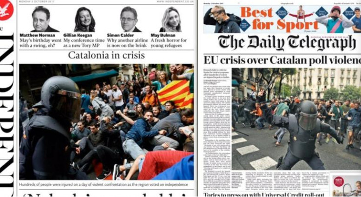 H πρωτοφανής βία στο καταλανικό δημοψήφισμα στα σημερινά πρωτσέλιδα του ξένου Τύπου που αποτυπώνουν το κύμα οργής κατά της Μαδρίτης. Η καταλανικήLa Vanguardia σχολιάσει όσα συνέβησαν αλλά και το αποτέλεσμα του δημοψηφίσματος με τίτλο «κυβέρνηση-καταστολή 1-0».
