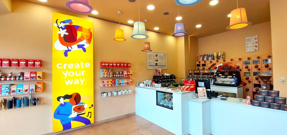 Σε έναν μοντέρνο, ιδιαίτερο χώρο, διακοσμημένο με στοιχεία εμπνευσμένα από τα εικαστικά των νεών συσκευασιών, οι επισκέπτες έχουν τη δυνατότητα να γνωρίσουν τη δημιουργική φιλοσοφία της μάρκας και τη νέα της ταυτότητα. Η νέα ταυτότητα έχει προκύψει μετά από μελέτη των συναισθηματικών κινήτρων των καταναλωτών καφέ, τα οποία βασίζονται στα αρχέτυπα της ανθρώπινης συμπεριφοράς, με το κίνητρο της δημιουργικότητας να αποτελεί ένα από τα πλέον σημαντικά. Επιβεβαιώνοντας λοιπόν το δημιουργικό της DNA, η Coffeeway μέσα από το μοναδικού σχεδιασμού concept store και με βασικό motto το «create your way», προσκαλεί τους καταναλωτές να βιώσουν τη μάρκα, να πάρουν έμπνευση μέσα από το δημιουργικό της «σύμπαν» και να ζήσουν μία μοναδική εμπειρία, συντροφιά με μία κούπα αρωματικού καφέ.