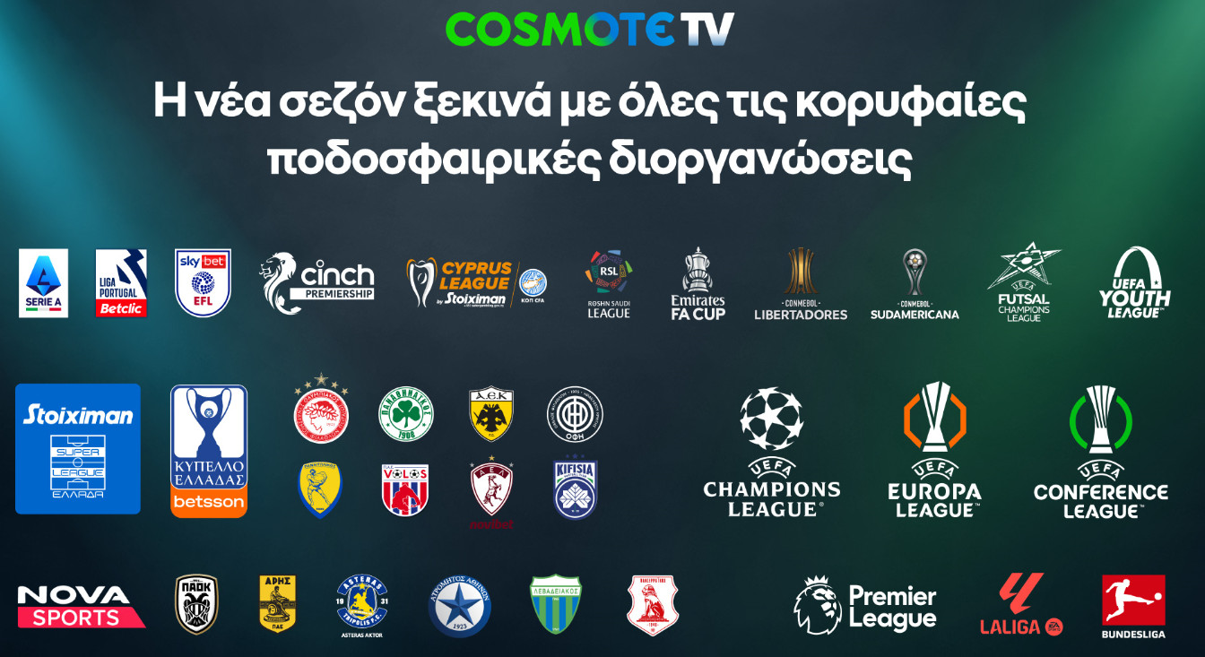 Η COSMOTE TV καλωσορίζει την αθλητική σεζόν 2025-2026, προσφέροντας στους συνδρομητές της πλούσιο θέαμα και δράση από όλες τις κορυφαίες ποδοσφαιρικές διοργανώσεις.