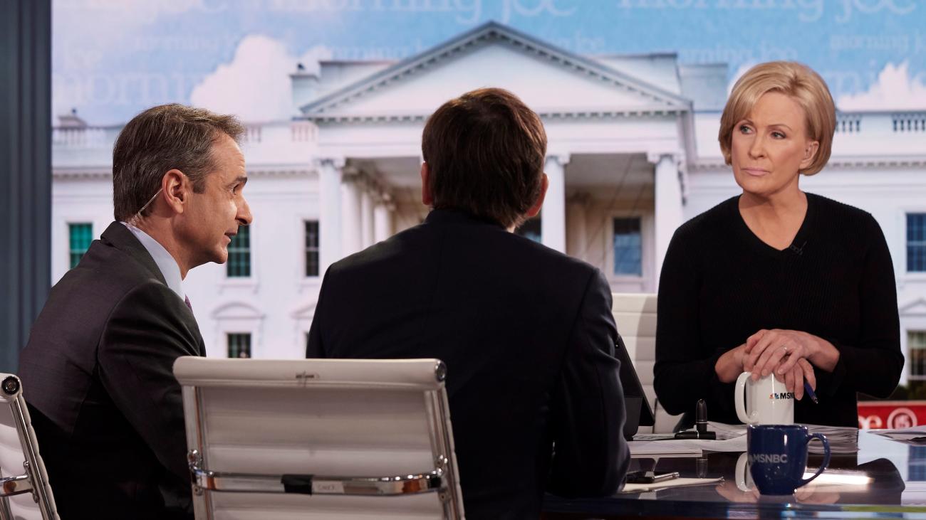 Ο πρωθυπουργός Κυριάκος Μητσοτάκης παραχώρησε συνέντευξη στο τηλεοπτικό δίκτυο MSNBC και την εκπομπή Morning Joe, μιλώντας για την Τουρκία, τον πόλεμο στην Ουκρανία, τις προτεραιότητες της κυβέρνησης αλλά και τι θα συζητήσει με τον Αμερικανό Πρόεδρο, Τζο Μπάιντεν και τι μήνυμα θα στείλει στους Αμερικανούς με την ομιλία του στο Κογκρέσο.