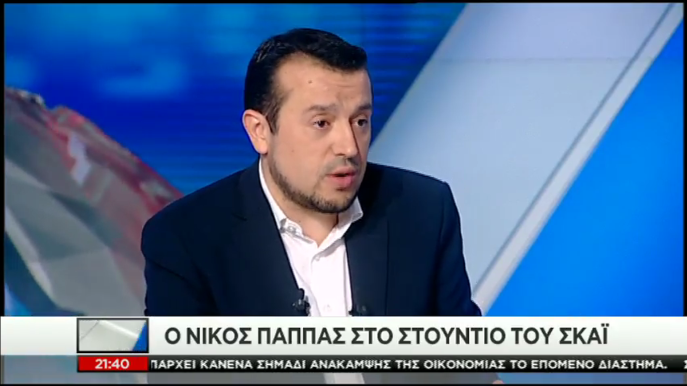 Ο υπουργός επικρατείας Νίκος Παππάς μίλησε στο κεντρικό δελτίο ειδήσεων του τηλεοπτικού σταθμού ΣΚΑΪ και τη Σία Κοσιώνη. Κάλεσε το κόμμα της αξιωματικής αντιπολίτευσης να ξανασκεφτεί τη στάση του για το Εθνικού Συμβουλίου Ραδιοτηλεόρασης.