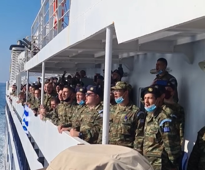 Σύμφωνα με το TheToc.gr και όπως μπορείτε να δείτε και εσείς στο βίντεο που ανέβασε μέλος του πληρώματος του πλοίου που μετέφερε την νέα σειρά στο Καστελόριζο, το ηθικό των φαντάρων είναι ιδιαίτερα υψηλό σε μια περίοδο που είναι συνεχείς οι τουρκικές προκλήσεις.