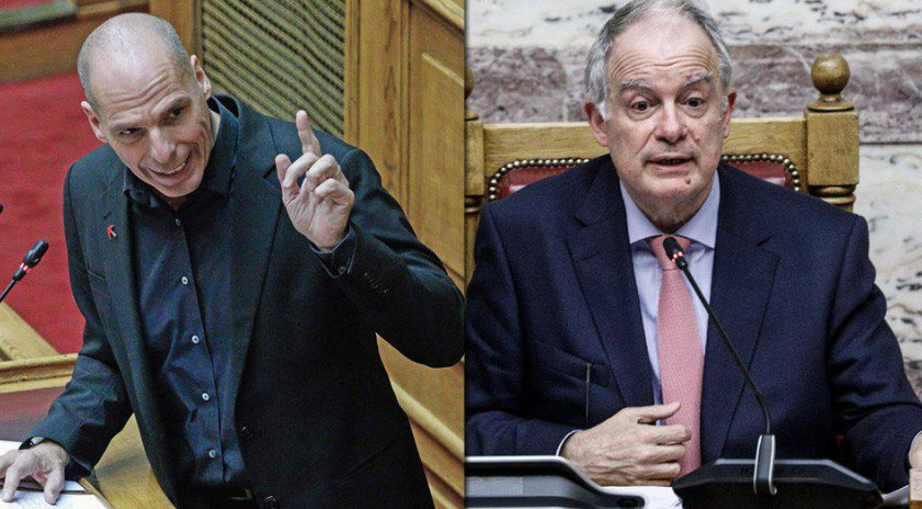 «Αρπάχτηκαν» αλλά με το «γάντι» Γιάνης Βαρουφάκης και Κωνσταντίνος Τασούλας με αφορμή την τρίλεπτη ταινία που προβλήθηκε στην πρόσοψη της Βουλής ανήμερα της τιμής για τις Ένοπλες Δυνάμεις της χώρας.