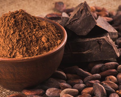 - Αποσύρετε από τη φωτιά και βάζετε στο μίγμα τη ζάχαρη, το κακάο, το κονιάκ και τα μπισκότα. Ανακατεύετε καλά