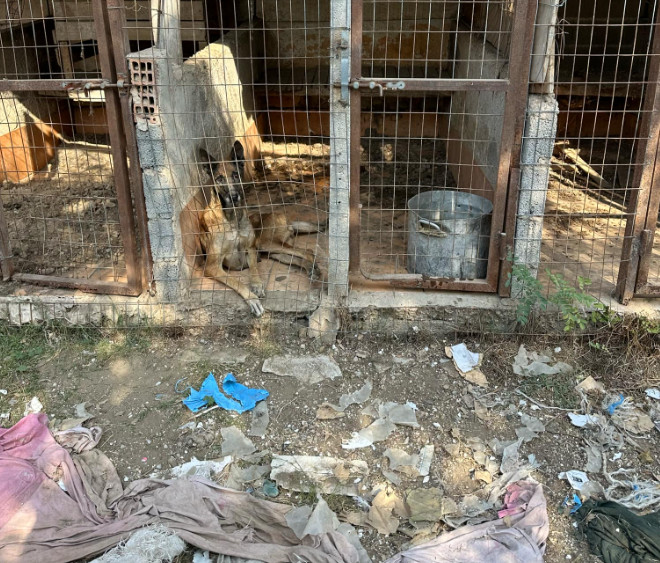 Αυτά τα σκυλιά βρέθηκαν στο χώρο του Δ. Μ. στα Πλατανούλια Λάρισας, στα όρια του Δήμου Τυρνάβου. Όλα ζούσαν σε κάτι αυτοσχέδιες κλούβες με σύρματα, γκρεμισμένα τοιχάκια, ξύλα. Χώροι μικροί, ασφυκτικοί με το ένα σκυλί πάνω στο άλλο, γεμάτοι σκουπίδια, τσίγκινα μπολ με μούχλα χωρίς φαγητό και πράσινα νερά. Χώροι που υποδηλώνουν τον εγκλεισμό και την εντέλει εγκληματική εγκατάλειψη αυτών των ζώων.