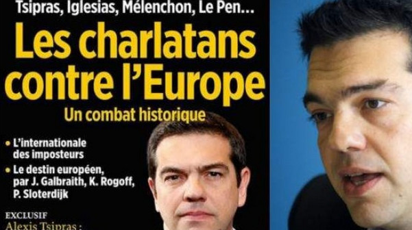 Το εβδομαδιαίο, συντηρητικό περιοδικό, που ανήκει σε πολυεκατομμυριούχο γάλλο επιχειρηματία, τοποθετεί τον έλληνα πρωθυπουργό στην κατηγορία των “τσαρλατάνων”, μαζί με τον Ιγκλέσιας των Ισπανών Podemos, την Μαρίν Λεπέν του εθνικιστικού Εθνικού Μετώπου της Γαλλίας, αλλά και τον πρώην πρόεδρο της γαλλικής Αριστεράς, Ζαν Λουκ Μελενσόν.