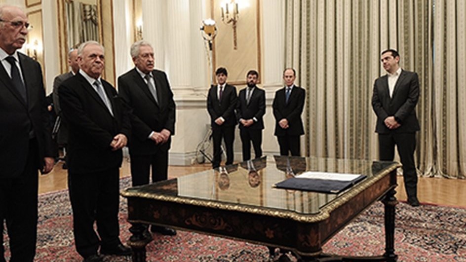 Η σημερινή ορκωμοσία έγινε χωρίς παρουσία εκπροσώπου της εκκλησίας ως είθισται και με τη λέξη “δηλώνω” αντί αυτής του “ορκίζομαι” και έγινε ενώπιον του Προέδρου Δημοκρατίας Προκόπη Παυλόπουλου και του πρωθυπουργού Αλέξη Τσίπρα. Τα μέλη της κυβέρνησης που προστέθηκαν ή μετακινήθηκαν είναι οι Φώτης Κουβέλης, Γιάννης Δραγασάκης, Μερόπη Τζούφη, Κωνσταντίνος Στρατής, Αθανάσιος Ηλιόπουλος και Δημήτρης Βίτσας (Υπουργός Οικονομίας και Ανάπτυξης ο Γιάννης Δραγασάκης στην θέση του Δημήτρη Παπαδημητρίου, Αναπληρωτής υπουργός Εθνικής Αμυνας ο Φώτης Κουβέλης στην θέση του Δημήτρη Βίτσα, Υπουργός Μεταναστευτικής Πολιτικής ο Δημήτρης Βίτσας στην θέση του Γιάννη Μουζάλα, Υφυπουργός Παιδείας η Μερόπη Τζούφη, Υφυπουργός Εργασίας ο Αθανάσιος Ηλιόπουλος στην θέση της Ράνιας Αντωνοπούλου, Υφυπουργός Πολιτισμού και Αθλητισμού ο Κωνσταντίνος Στρατή).