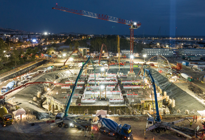 Για πρώτη φορά στην Ελλάδα, εξειδικευμένοι μηχανικοί, τεχνικοί και εργατικό προσωπικό εργάστηκαν σε οκτάωρες βάρδιες, για περισσότερες από 40 συνεχόμενες ώρες χωρίς διακοπή, ολοκληρώνοντας μία, μοναδική για τα ελληνικά δεδομένα, πρωτοποριακή μέθοδο σκυροδέτησης.