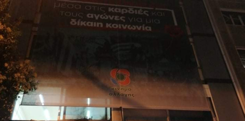 Παράλληλα, το βράδυ της Δευτέρας, ανήρτησε πανό στα κεντρικά γραφεία στη Χ. Τρικούπη το οποίο γράφει: «Μέσα στις καρδιές και τους αγώνες για μια δίκαιη κοινωνία».