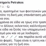 Συγκεκριμένα, ο Γρηγόρης Πετράκος αναφέρει στην ανάρτησή του τα εξής:
