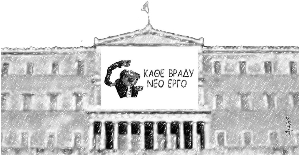 Στο ρόλο τού ενορχηστρωτή αυτής της πολιτικής και θεσμικής κακοφωνίας βλέπουμε μία αντιστοίχως ανύπαρκτου ειδικού «βάρους» παραπαίουσα κυβέρνηση να πριμοδοτεί με κάθε πρόσφορο μέσον την συντελούμενη απαξίωση των θεσμών και τον συνολικότερο ευτελισμό της πολιτικής ζωής. Οι άνθρωποί της, έχοντας αναγάγει το υποχθόνιο πολιτικό αλισβερίσι και το ξέπλυμα συνειδήσεων σε αυταξία, πασχίζουν με αγωνιώδη προσήλωση για την εκπλήρωση ενός και μοναδικού στόχου: την με κάθε τρόπο αυτο-συγκόλλησή τους με τις προσοδοφόρες καρέκλες τής εξουσίας.