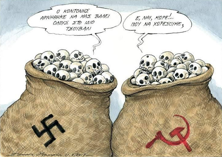 Η Γενική Γραμματέας του υπουργείου Δικαιοσύνης κα Μαρία Γιαννακάκη, το είπε πιο συνοπτικά και πιο αποκαλυπτικά: «Αυτοί η οποίοι βάζουν στην ίδια εξίσωση τον κομμουνισμό με το ναζισμό έχουν μόνο ένα όνομα: είναι συμπαθούντες τον ναζισμό».