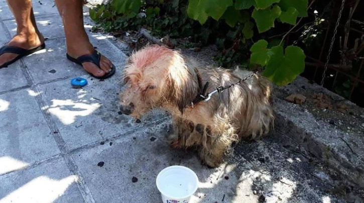 Η δράση του 62χρονου, έγινε αντιληπτή από κατοίκους της περιοχής Σολάρι, όπου βρισκόταν δεμένο το σκυλί, που λόγω της αφόρητης ζέστης και του πετρελαίου στο σώμα του, είχε εκδηλώσει ακραία και επικίνδυνα σημάδια αδιαθεσίας.