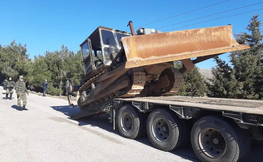 Τα μηχανήματα του στρατού ξεκίνησαν τις εργασίες υπό τις οδηγίες του μηχανικού της εταιρίας που έχει αναλάβει το έργο.