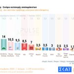 Προβάδισμα 10 ποσοστιαίων μονάδων καταγράφει η Νέα Δημοκρατία έναντι του ΣΥΡΙΖΑ στην πρόθεση ψήφου με αναγωγή επί των εγκύρων, σύμφωνα με τη νέα μεγάλη δημοσκόπηση του ΣΚΑΪ και της Pulse που παρουσιάστηκε στο κεντρικό δελτίο ειδήσεων με τη Σία Κοσιώνη.