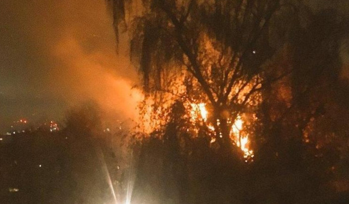 Σύμφωνα με την βρετανική Mirror, οι φλόγες έχουν τυλίξει τον δεύτερο και τον τρίτο όροφο και έχουν φτάσει στην σκεπή του τετραώροφου κτηρίου.