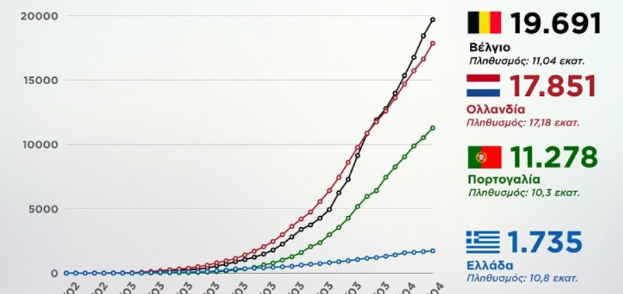Τα γραφήματα που παρουσίασε στη χθεσινή ενημέρωση των πολιτικών συντακτών ο κυβερνητικός εκπρόσωπος Στέλιος Πέτσας είναι ενδεικτικά: η Ελλάδα, αυτή τη στιγμή, είναι σε καλύτερη θέση από χώρες ομοίου μεγέθους και αντίστοιχου πληθυσμού, όπως η Ολλανδία, το Βέλγιο και η Πορτογαλία, με μακράν λιγότερα κρούσματα και λιγότερους θανάτους. Αυτό είναι επιβεβαίωση ότι τα μέτρα δουλεύουν.