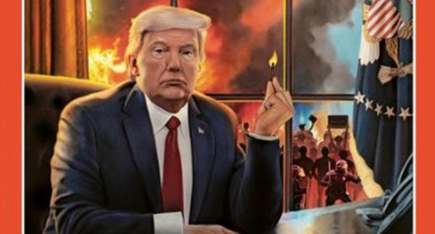 Κορυφαίο το εξώφυλλο του περιοδικού Der Spiegel που κυκλοφορεί σήμερα. Ο πρόεδρος των ΗΠΑ, με αναμμένο σπίρτο στο χέρι και αδιάφορο ύφος, ετοιμάζεται να βάλει φωτιά στη χώρα του. ΄Εξω από το παράθυρο πίσω του βγαίνουν ήδη φλόγες και καπνός. Είναι η απεικόνιση της μόνης εναπομείνασας στον κόσμο υπερδύναμης σε κατάσταση έκτακτης ανάγκης μετά τον βίαιο θάνατο από λευκό αστυνομικό άλλου ενός Αφροαμερικανού. Τίτλος στο εξώφυλλο: «Ο εμπρηστής».