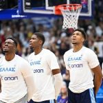 ΕΛΛΑΔΑ: Λύμουρα, Σπυριδοπούλου 8 (2), Μάλτση 15 (2 6 ριμπ.), Νικολοπούλου 2, Σωτηρίου 3 (1), Κοσμά, Σπανού 8, Καλτσίδου 24 (2), Χριστινάκη, Φασούλα 2.