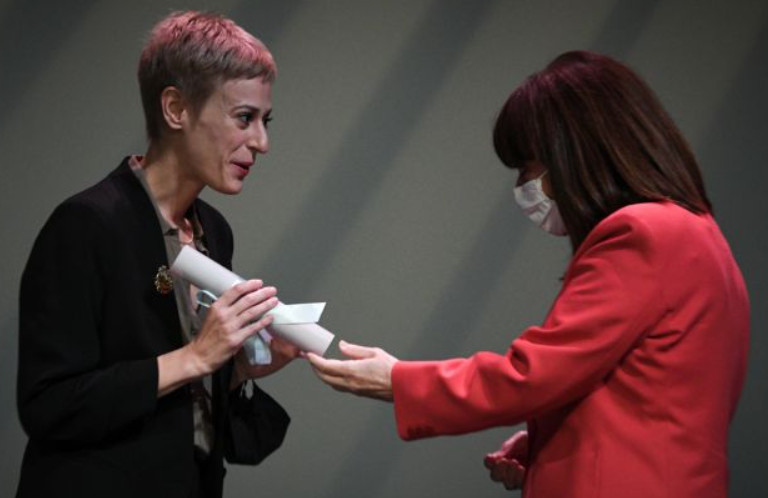 Η απονομή του βραβείου πραγματοποιήθηκε στο Εθνικό Θέατρο REX- Σκηνή Μαρίκα Κοτοπούλη, παρουσία της Προέδρου της Δημοκρατίας Κατερίνας Σακελλαροπούλου και της υπουργού Πολιτισμού Λίνας Μενδώνη. Συνυποψήφιες της Δήμητρας Βλαγκοπούλου ήταν η Μαίρη Μηνά και η Ελένη Στεργίου.
